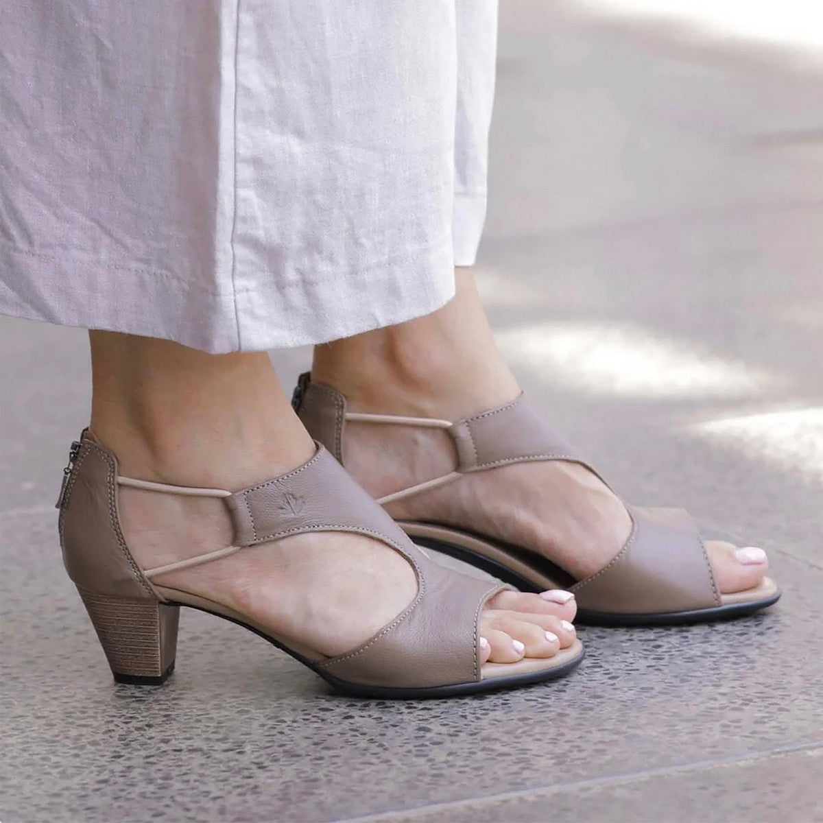 This genuine leather wider fit T-Bar heel offers a balance between comfort and style that’s perfect through the season. Versatile and so easy to wear. The zip up the back makes for easy on-off-access and the elastic straps ensure a fit that`s perfect!