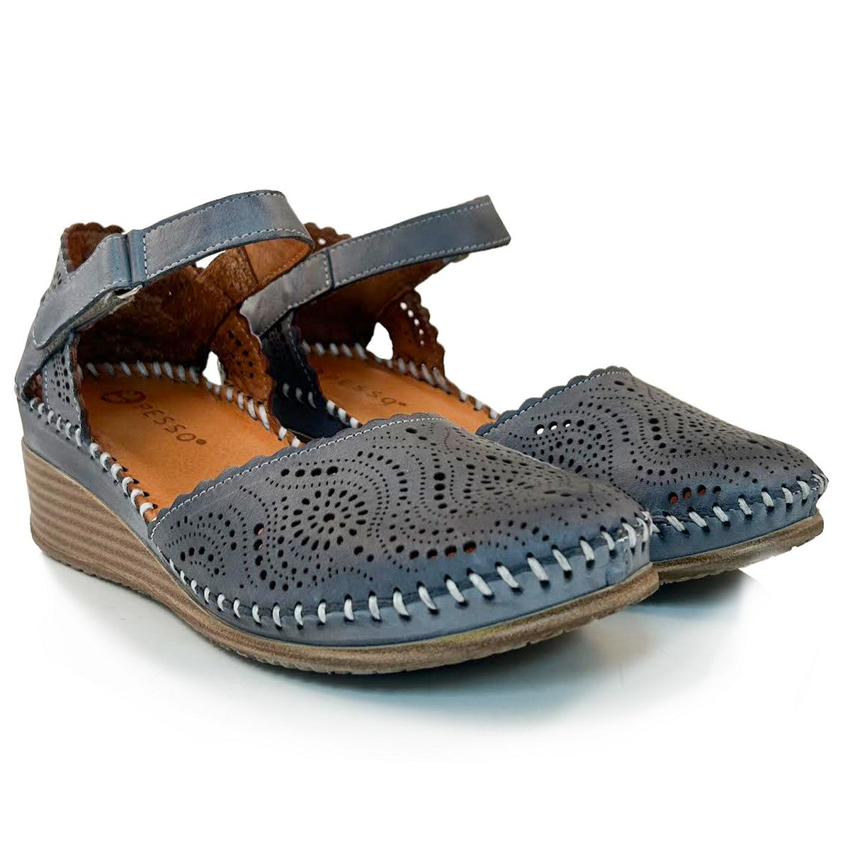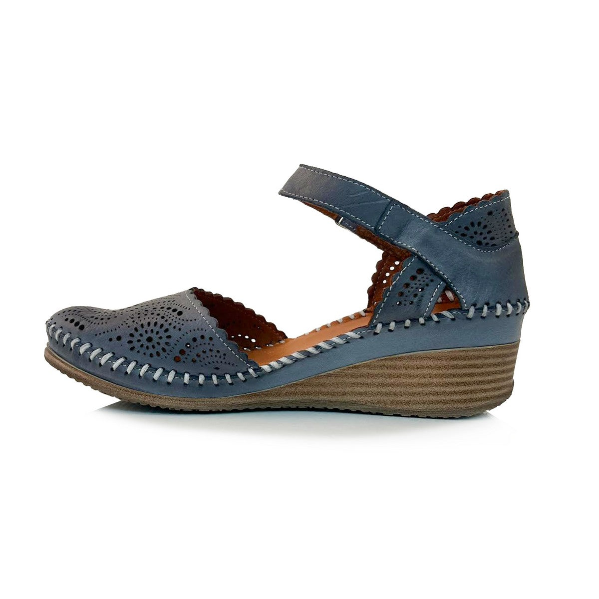 A neat summer wedge, with intricate stitching detail and a flawless laser-cut design. On a well-padded and soft leather footbed, for all day comfort it's a must have this summer! Handmade in Europe.