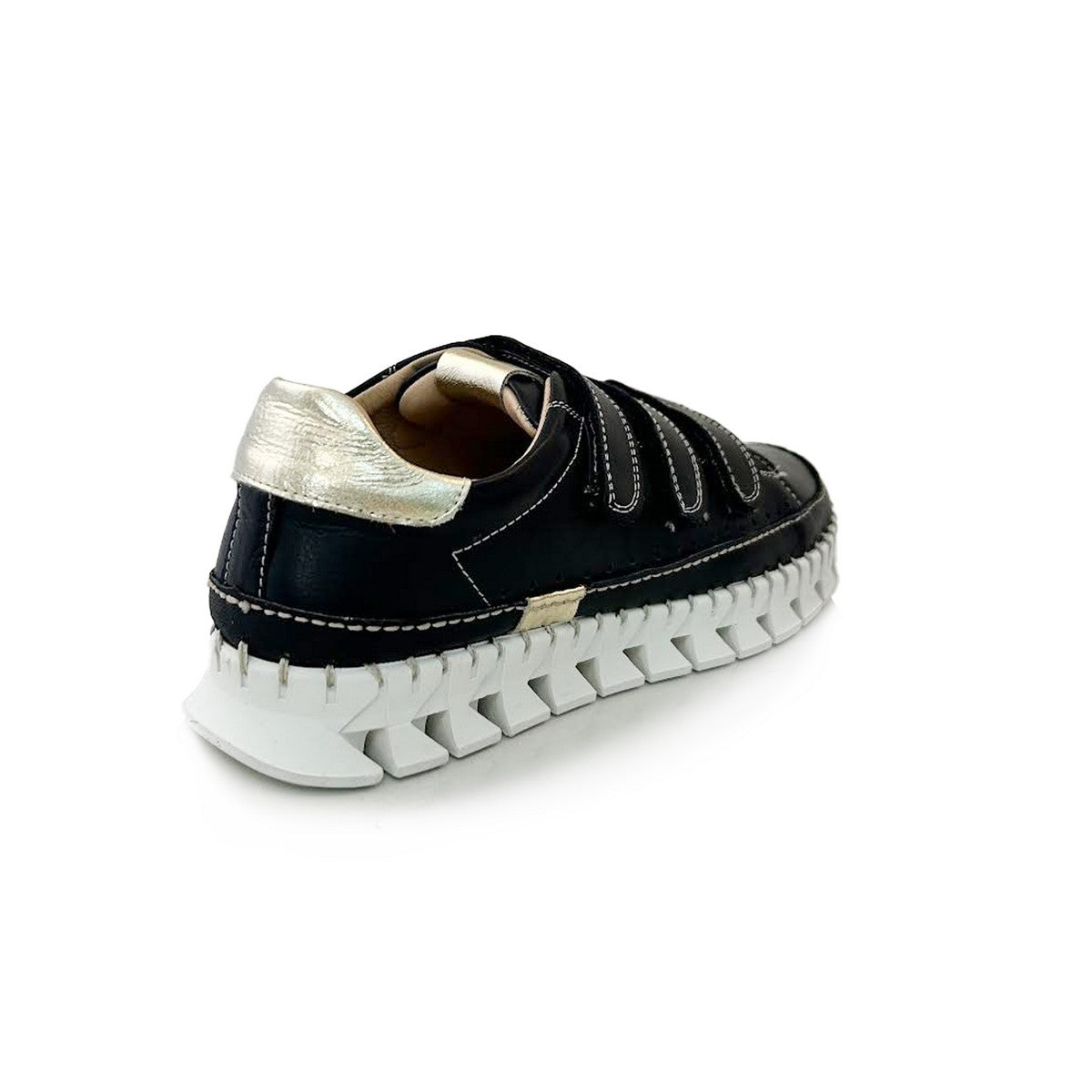 An innovative new three-strap design on our bestselling sole, providing the comfiest flexibility you will ever experience in a sneaker! The super-soft leather upper and leather footbed, means breathability for your feet - on even the hottest days! On a rubberised and non-slip sole. Handmade in Europe.